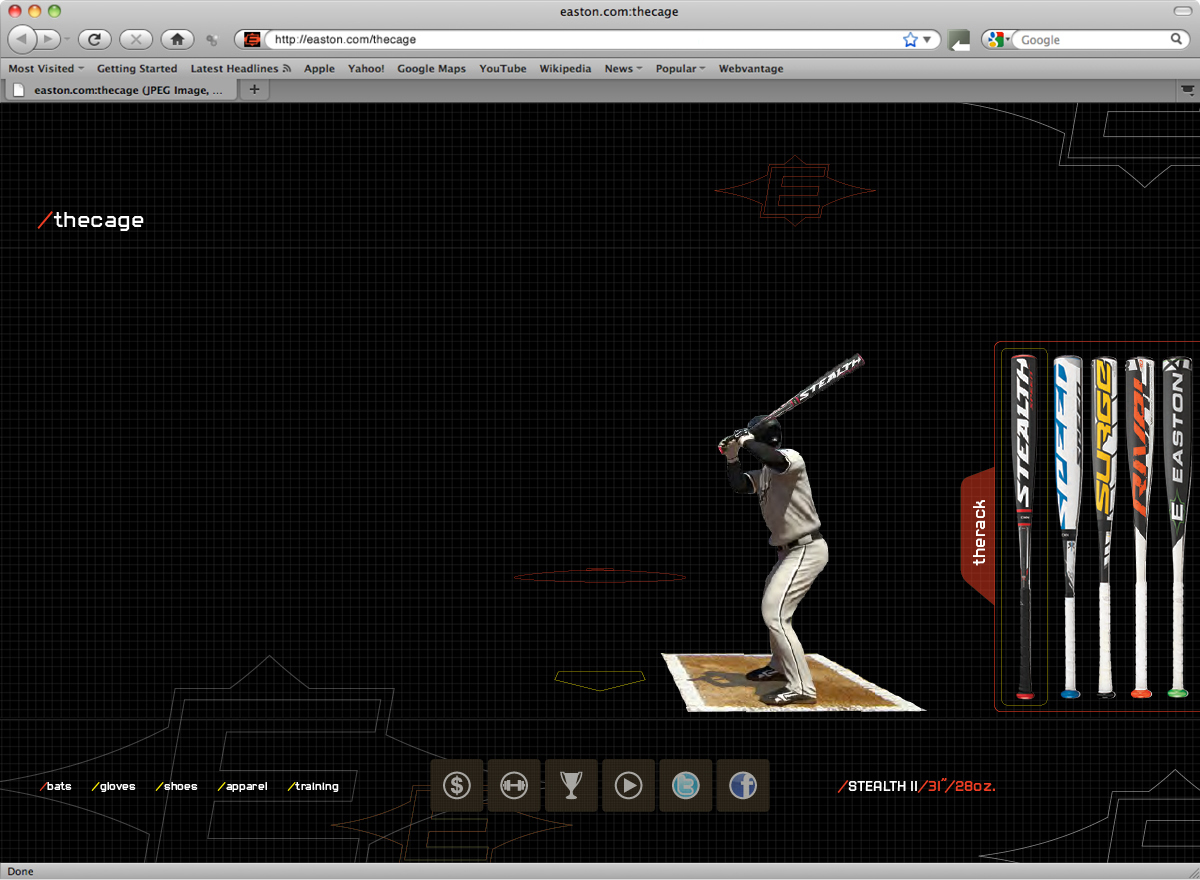 To highlight the nanotechnology in the new bats, we created “The Cage” — a futuristic online testing facility that is both a game and a place to try out the entire line of baseball and softball equipment.