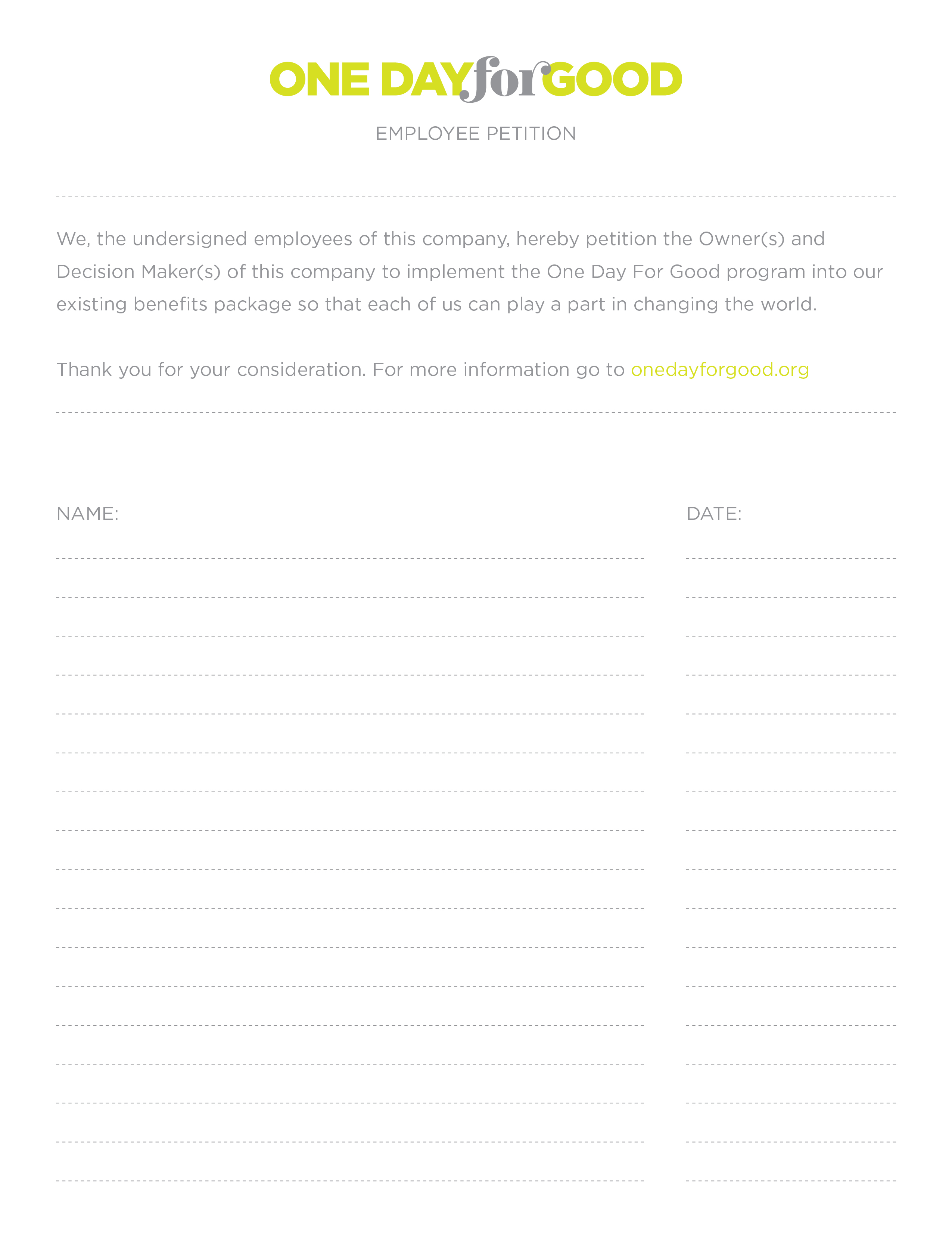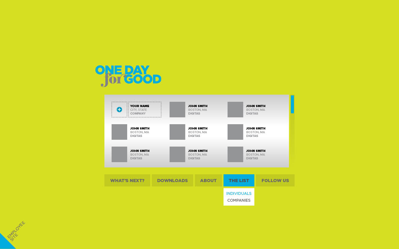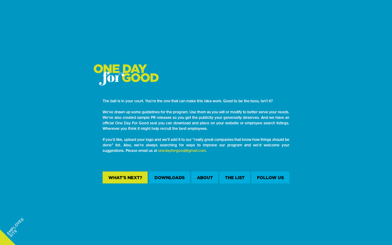 One Day for Good is an idea. It came into being when my writer, Nick Liebeskind, and I were lamenting the fact that, while advertising is a pretty great job in general, most of the time what we do isn’t truly meaningful. So we looked into volunteering for a charitable organization, but what we found was that they really need volunteers during the workweek, not the weekend as we were planning. Now came the tough question, were we willing to give up a precious vacation day to do good in the world? Or was there another way?