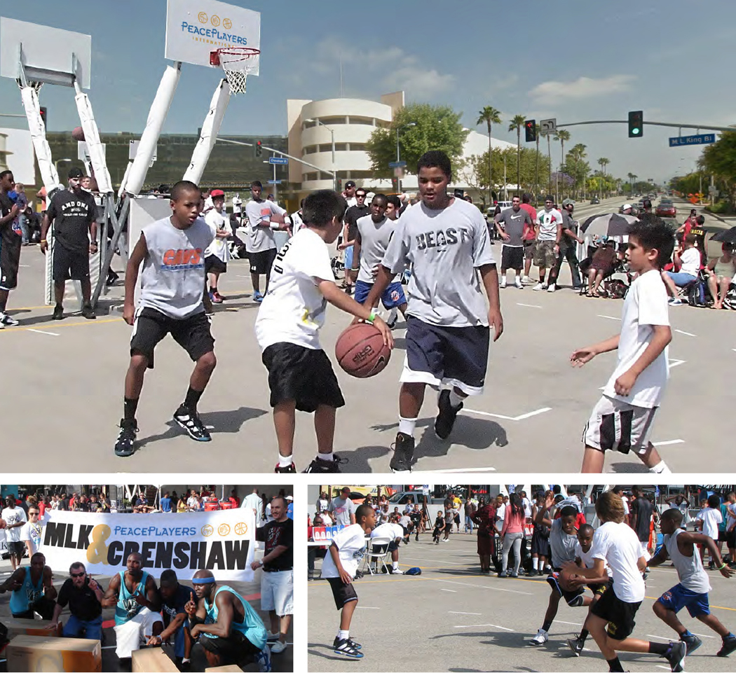 At-risk youth were invited to participate in 3-on-3 tournaments and learn about athletic, academic and educational programs designed to keep them away from gangs. Courts were built around actual street lines where gang activity is prevalent.